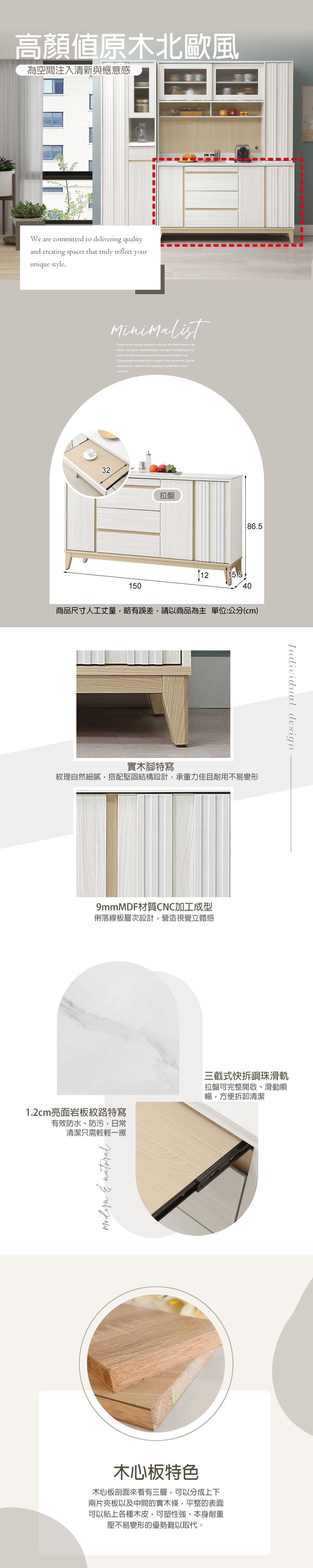 • 規格:寬150x深40x高86.5(公分)