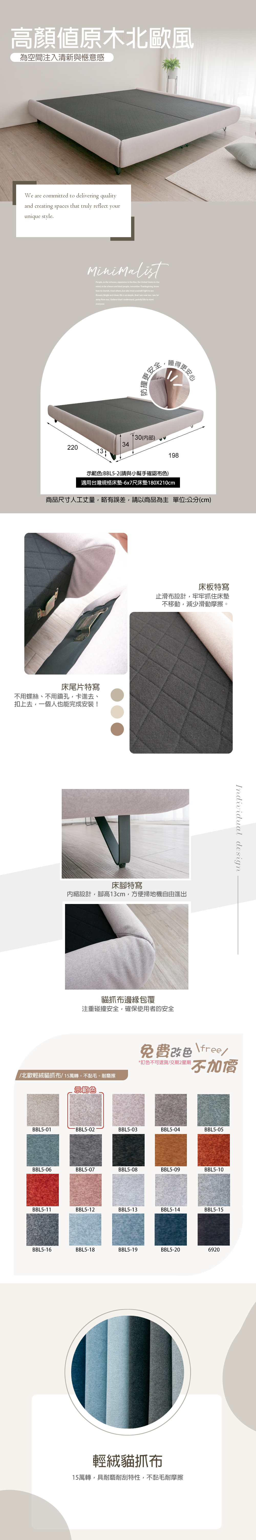 • 規格:寬198X深220X床底高34CM(內30);腳高13CM