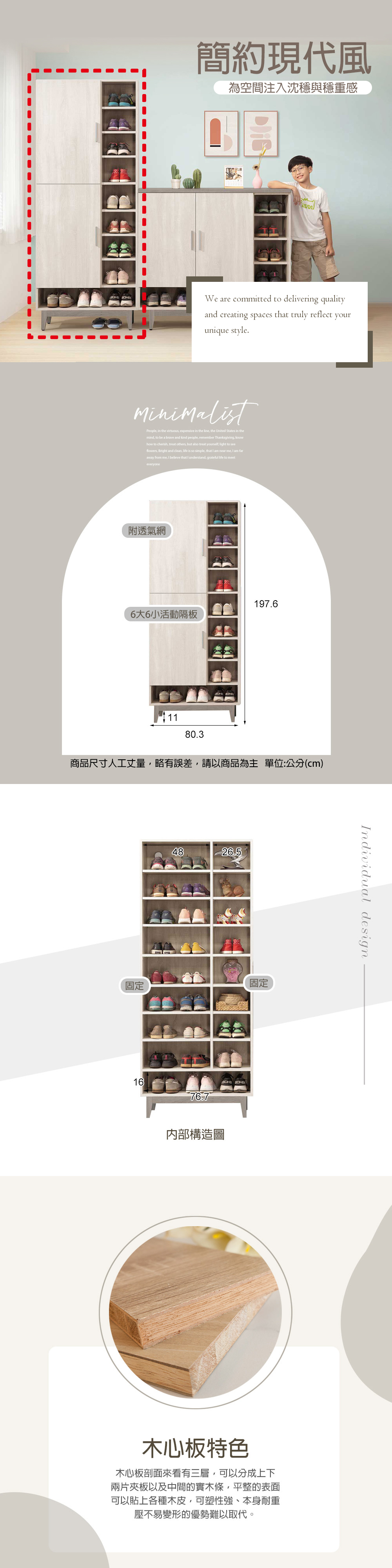 - 規格:寬80.3x深31.8x高197.6(公分)
