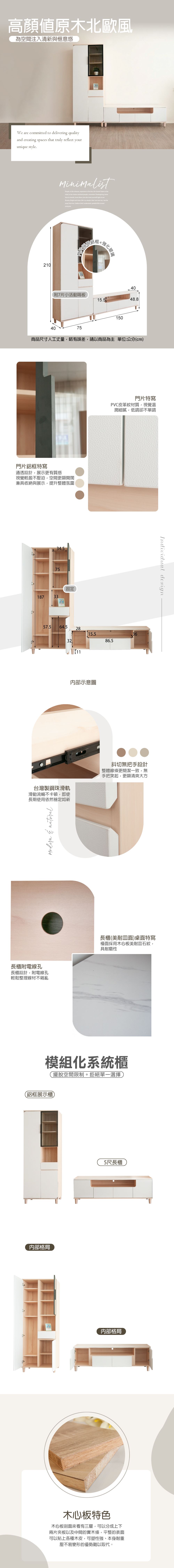 材質:1.採全環保木心板包含抽牆,經立體木紋耐磨塗裝,PVC耐磨耐水(白色)2.採系統式1.5mm厚封邊處理3.抽屜採用高級鋼珠滑軌,內斜式把手4.門片採用油壓緩衝後鈕,可自動收合,門片採用強化玻璃加鋁框5.背板採用崁入式美背設計6.台灣製造備註:2.5x6.7尺展示櫃:附7片活動隔板