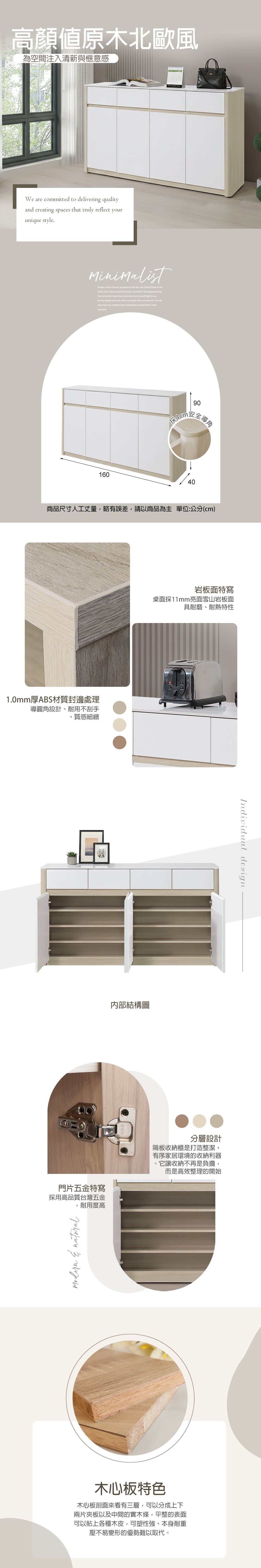 4. 側板採三層木心板圓柱,櫃體採4cm圓角設計