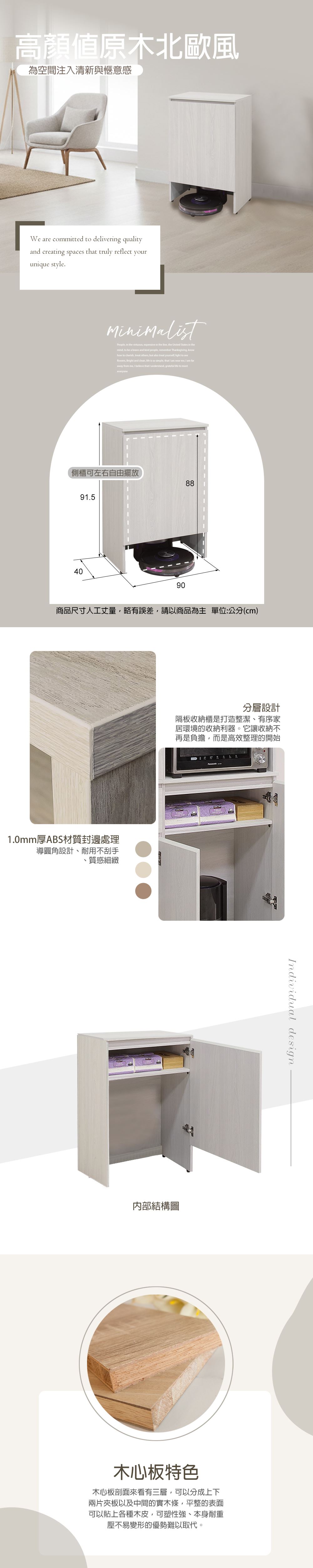 規格:寬60X深40X高91.5CM, 掃地機內高73CM上方活動層板可拿下(拿掉後總和高88CM)