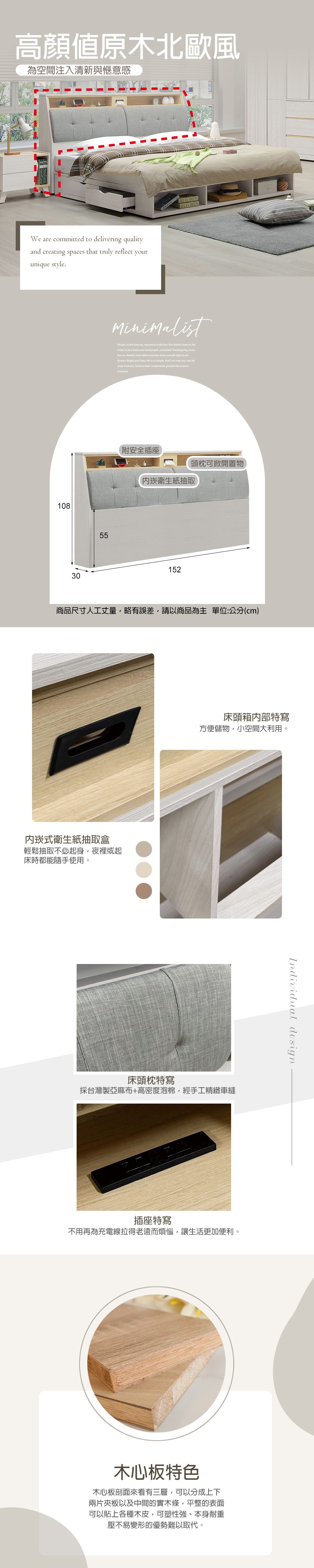 5尺床頭箱 標準雙人被櫥頭 床頭背板 【163B4702】163-M101