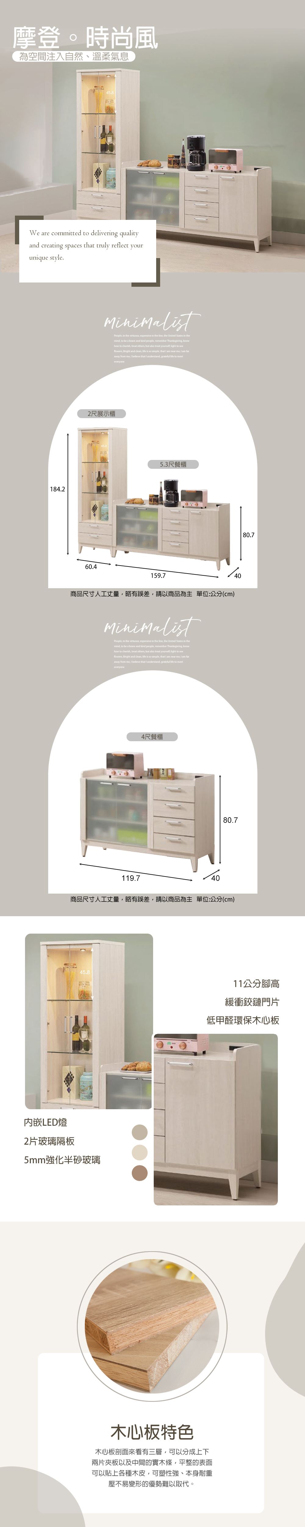 ◆4尺餐櫃:寬119.7X深40×高80.7公分