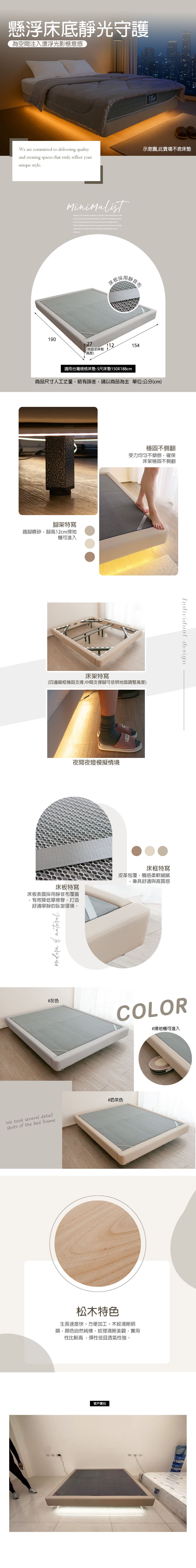 <附影片>5尺皮革漂浮床底 床底座 標準雙人 【253-DB01】