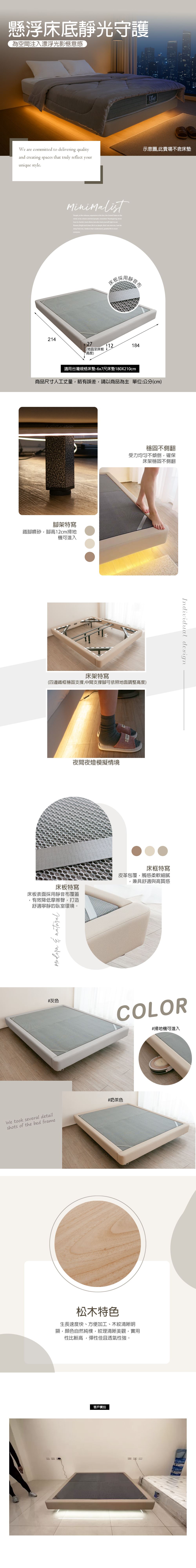 規格說明:6x7尺床底:寬184X深214X床底高27CM;腳高12CM