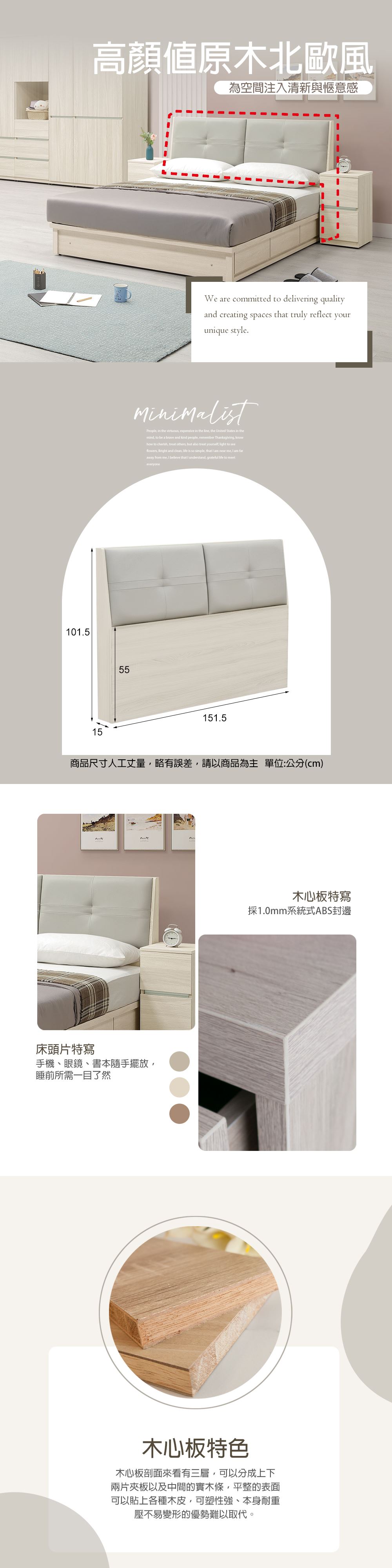 材質:採用台灣製造防蛀環保低甲醛木心板.表面PVC耐磨耐水浮雕木紋紙.正面及面板採用 1.0mm ABS