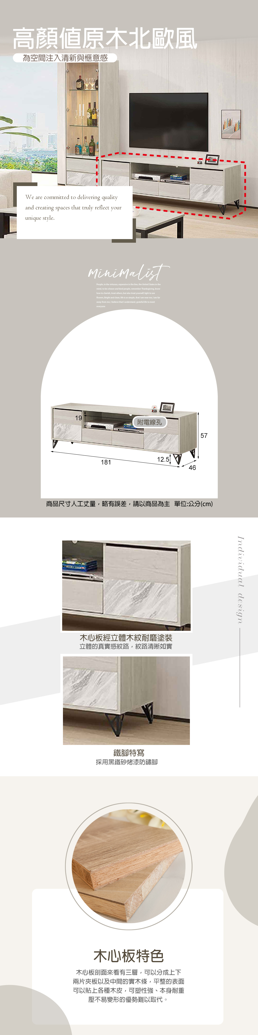材質:採用木心板.抽屜抽牆木心板,後板.抽底1分夾板