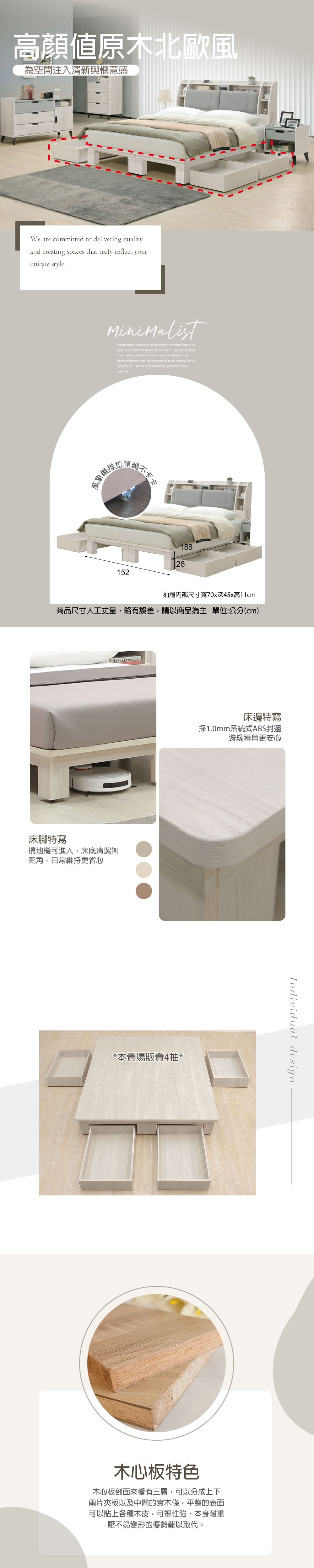 5尺床底(含4抽屜) 標準雙人床底座 【275A2446】275-825+821+818x4