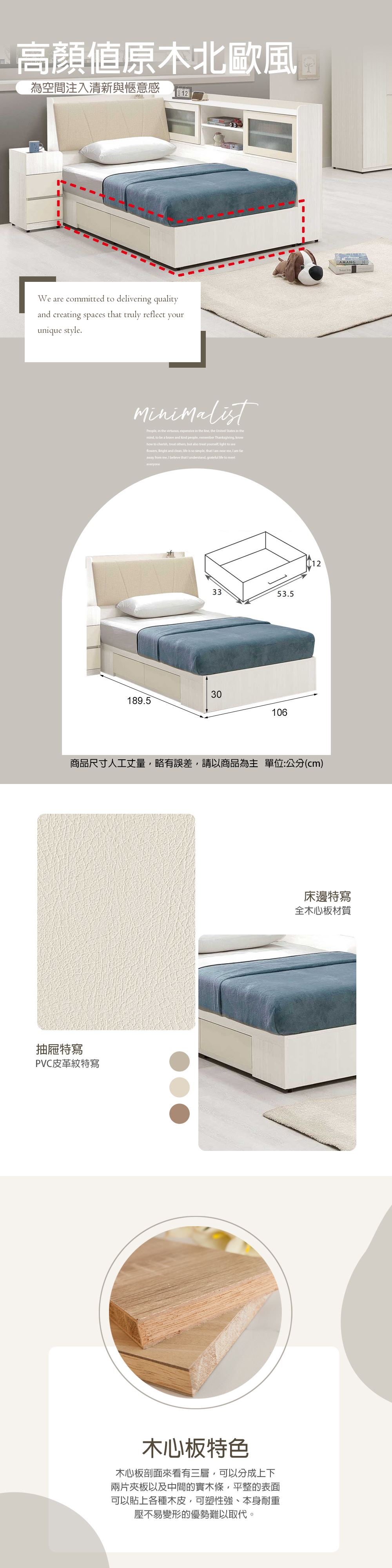 材質:正面採用奶茶色皮紋 PVC. 全木心板材質