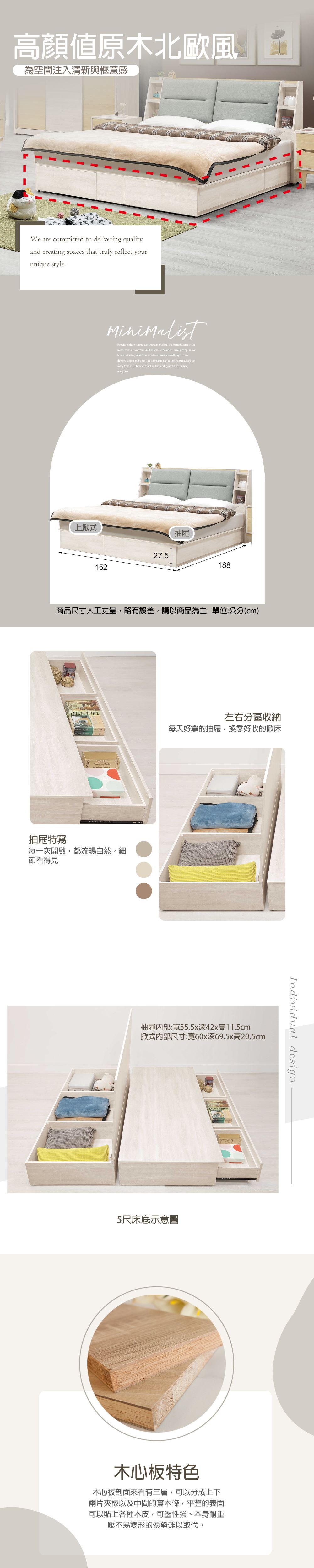 5尺床底(含三格抽屜+掀式床底) 標準雙人床底座 【275A3423】275-H16+H17