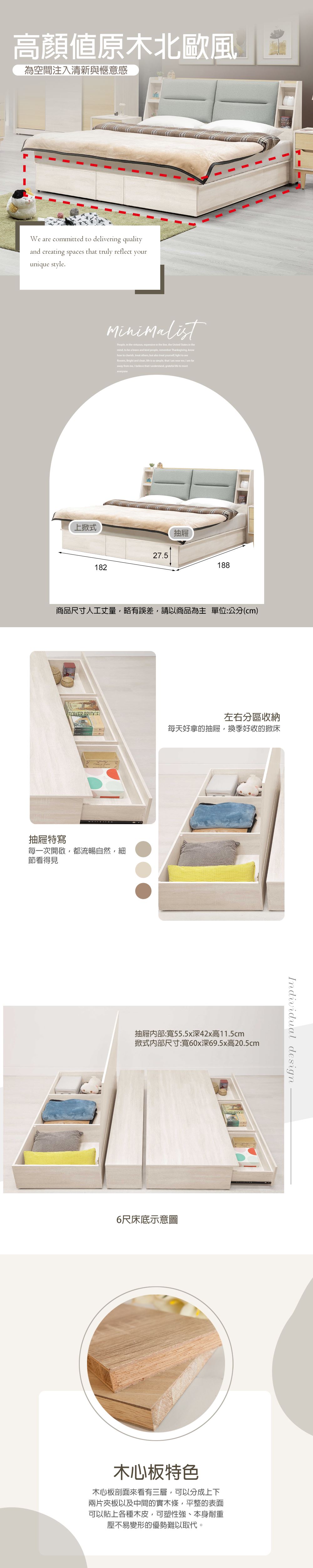 6尺床底(含三格抽屜+掀式床底) 雙人加大床底座 【275A3425】275-H16+H18+H17