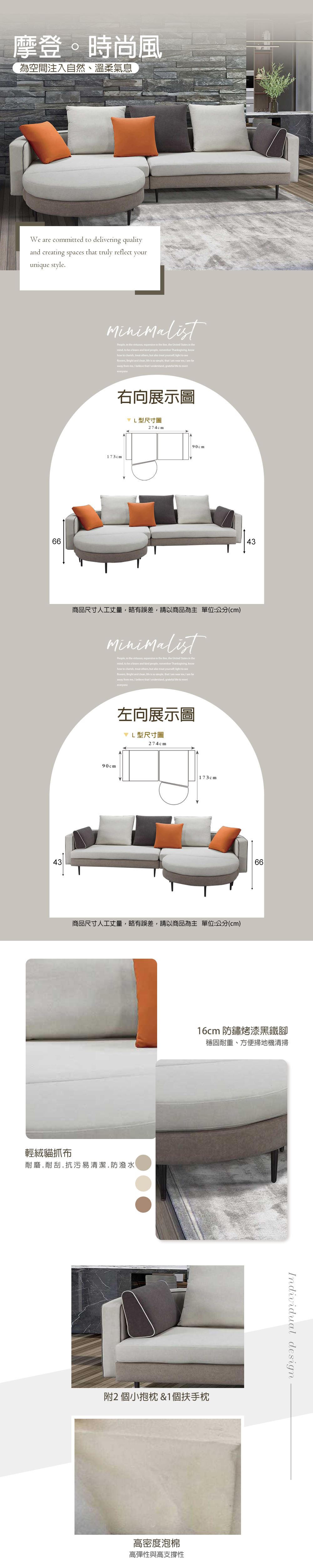 L型貓抓布沙發 貴妃椅 【275A5162】275-FD24-07