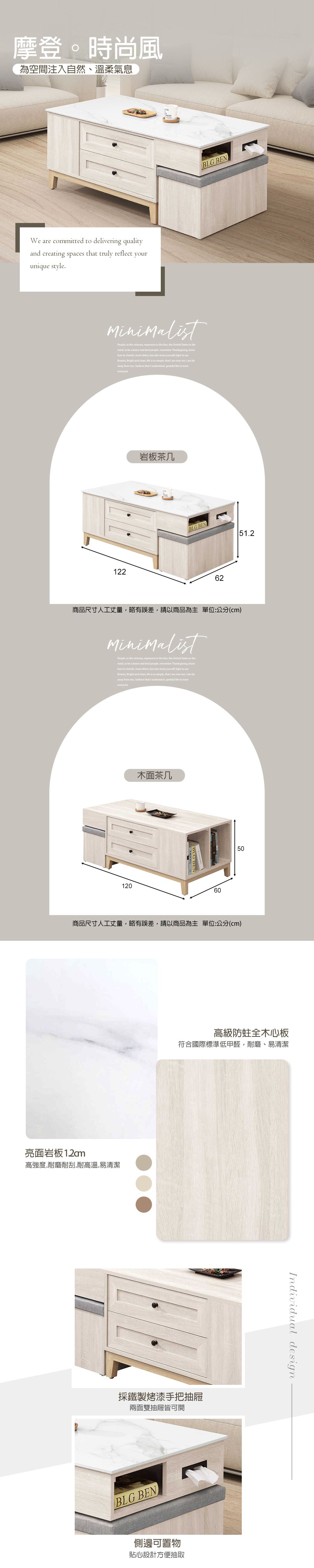 ◆岩板茶几:寬122×深62×高51.2(公分)