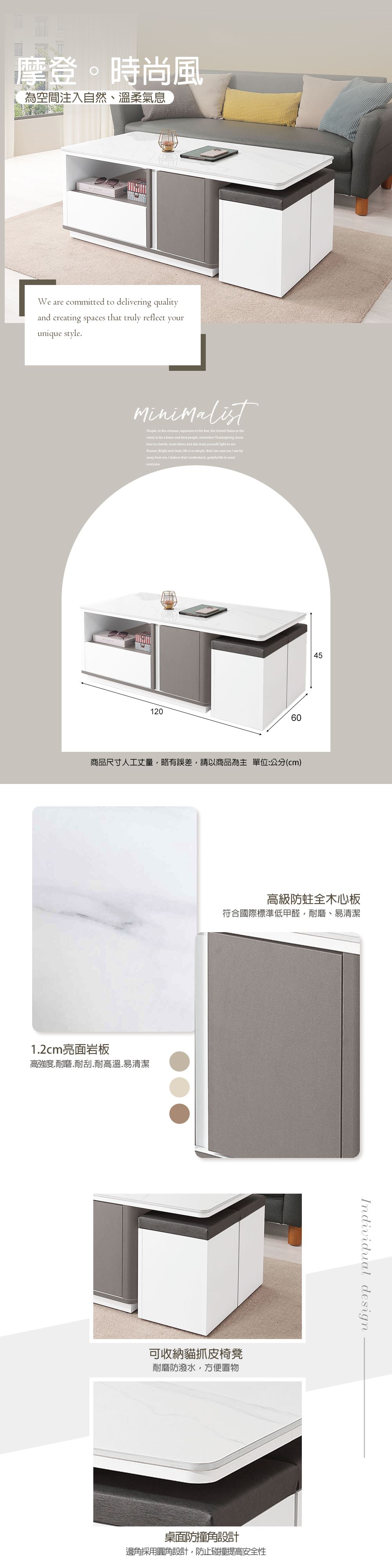◎台灣製🇹🇼◎材質:採用國際標準低甲醛木心板◎抽屜:鋼珠滑軌◎特色:邊角採用圓角設計.防止碰撞造成傷害◎1.2cm亮面岩板:高強度.耐磨耐刮.耐高溫.易清潔◎兩面單抽單門皆可開◎可收納貓抓皮腳椅