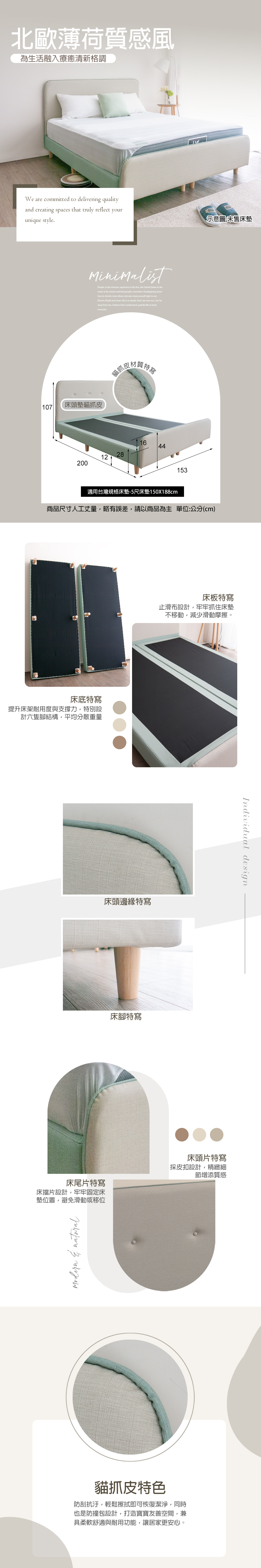 規格:153X深200X床頭片高107X床底高28CM;床尾片高44CM(檔高16CM);腳高12CM