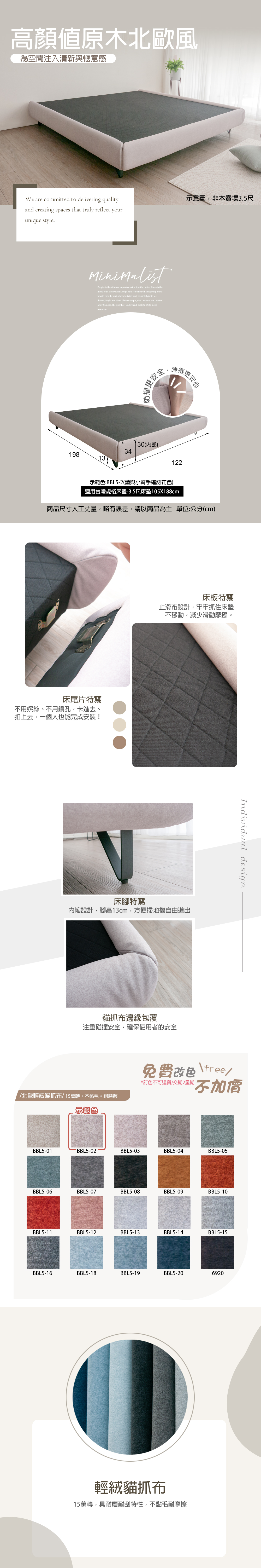 <附影片>3.5尺崁入式漂浮床底 貓抓絨床底座 單人加大 【293-SB011】