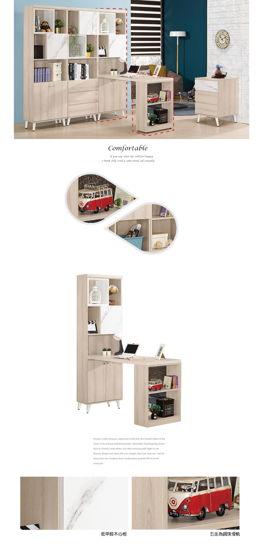 大理石紋雙色2尺書櫃組電腦桌辦公桌工作桌【228A4061】228-922+923-1-3