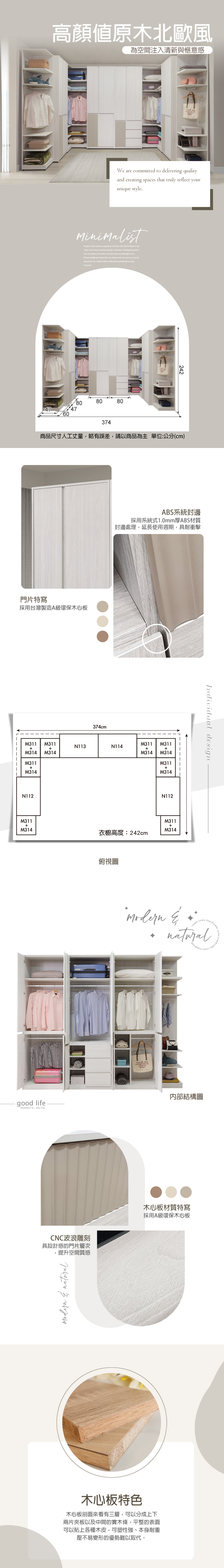 1.正面採MDF材質經CNC波浪雕刻,奶油色烤漆全包覆處理2.櫃體與抽牆採用台灣製造A級環保木心板,採專利技術同調木紋鋼刷壓紋,猶如實木質感3.採用系統式1.0mm厚ABS材質封邊處理,質感細緻延長使用週期,具耐衝擊特質4.抽屜採用台灣製鋼珠滑軌,門片採用油壓緩衝鉸鏈5.背板採用內崁式美背處理,美觀又細緻6.台灣製造