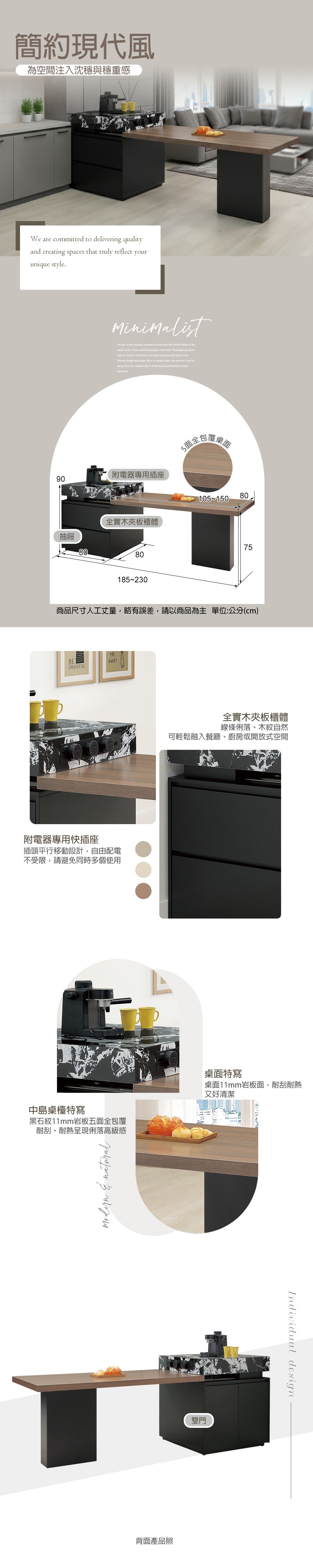 6.1尺岩板伸縮島台桌 中島桌 餐櫃 餐桌 吧檯桌 餐廚桌 【163A40901】163-815