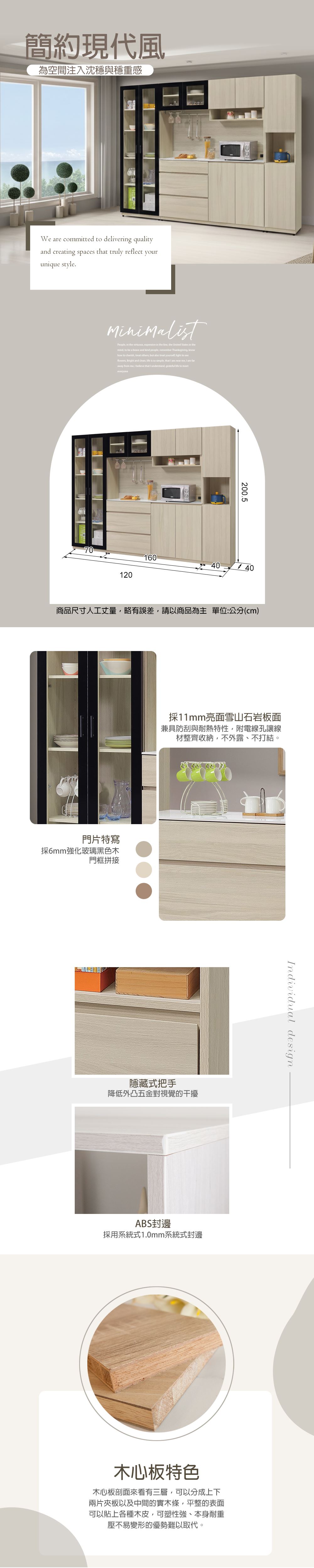 1. 環保木心板包含抽牆,經立體木紋耐磨塗裝
