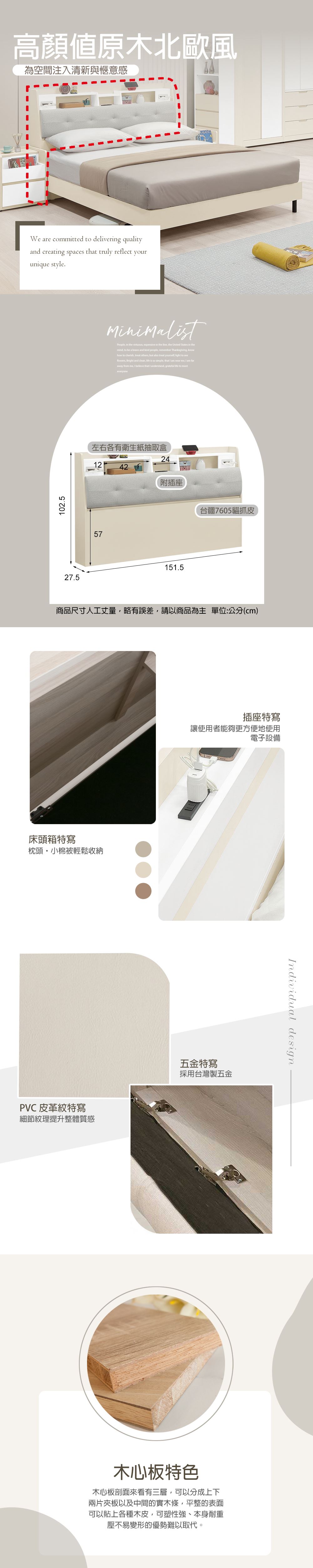 5尺貓抓皮床頭箱附插座 標準雙人床頭背板 床頭 【275A2013】275-023