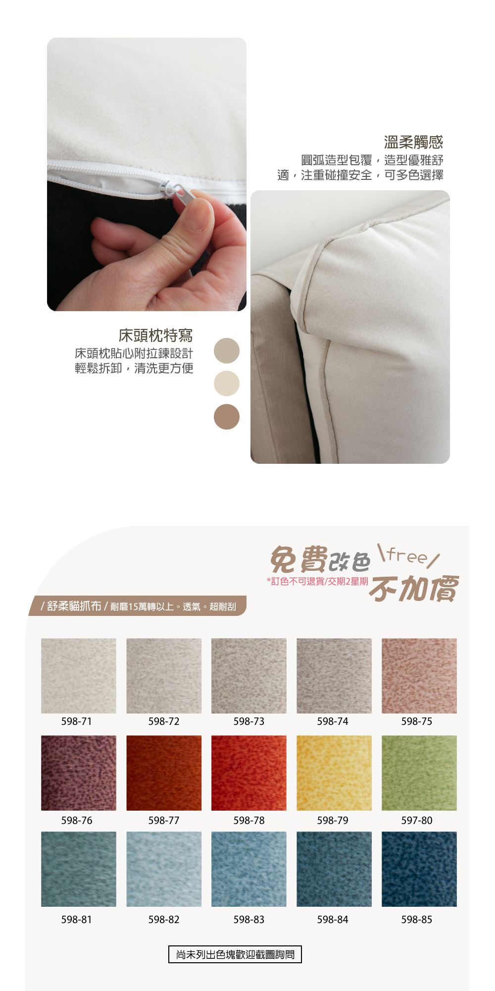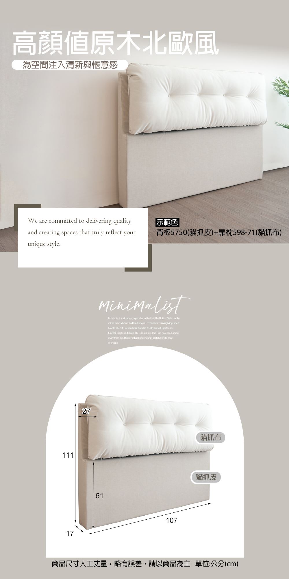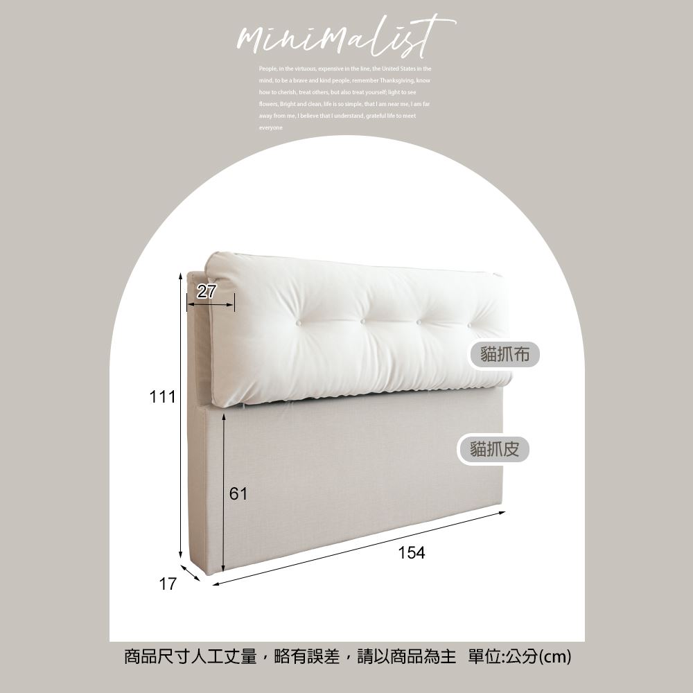 1.床頭枕採用貓抓皮+貓抓布,經手工精緻車縫處理,附拉鍊設計可方便拆卸